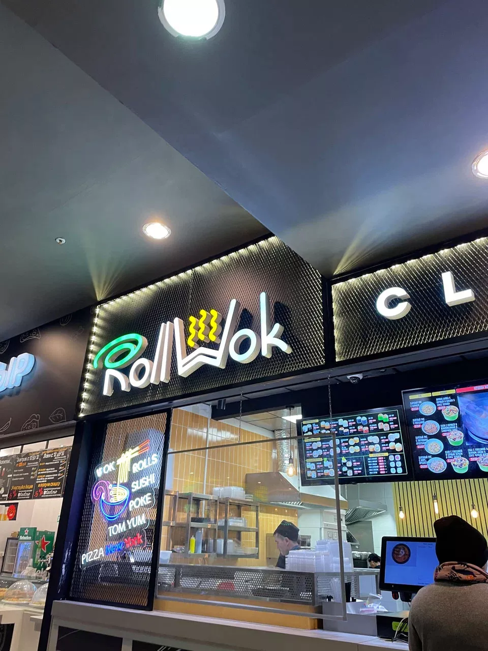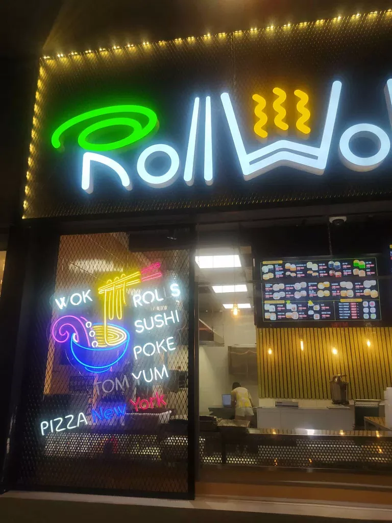 Разработка светящейся интерьерной вывески суши-бара «Roll Wok Club» в Озёрске