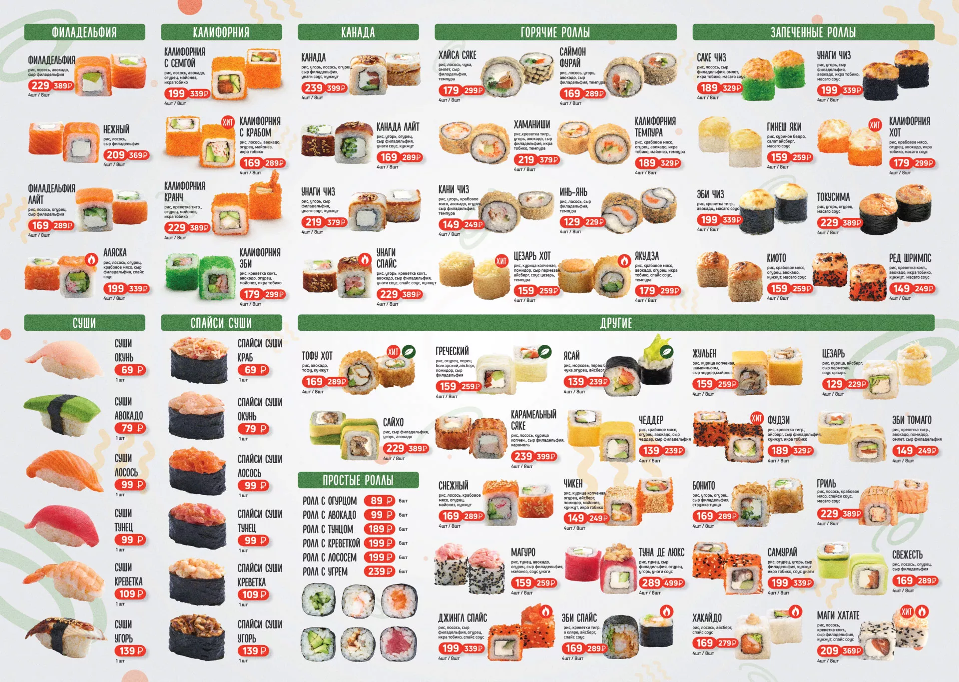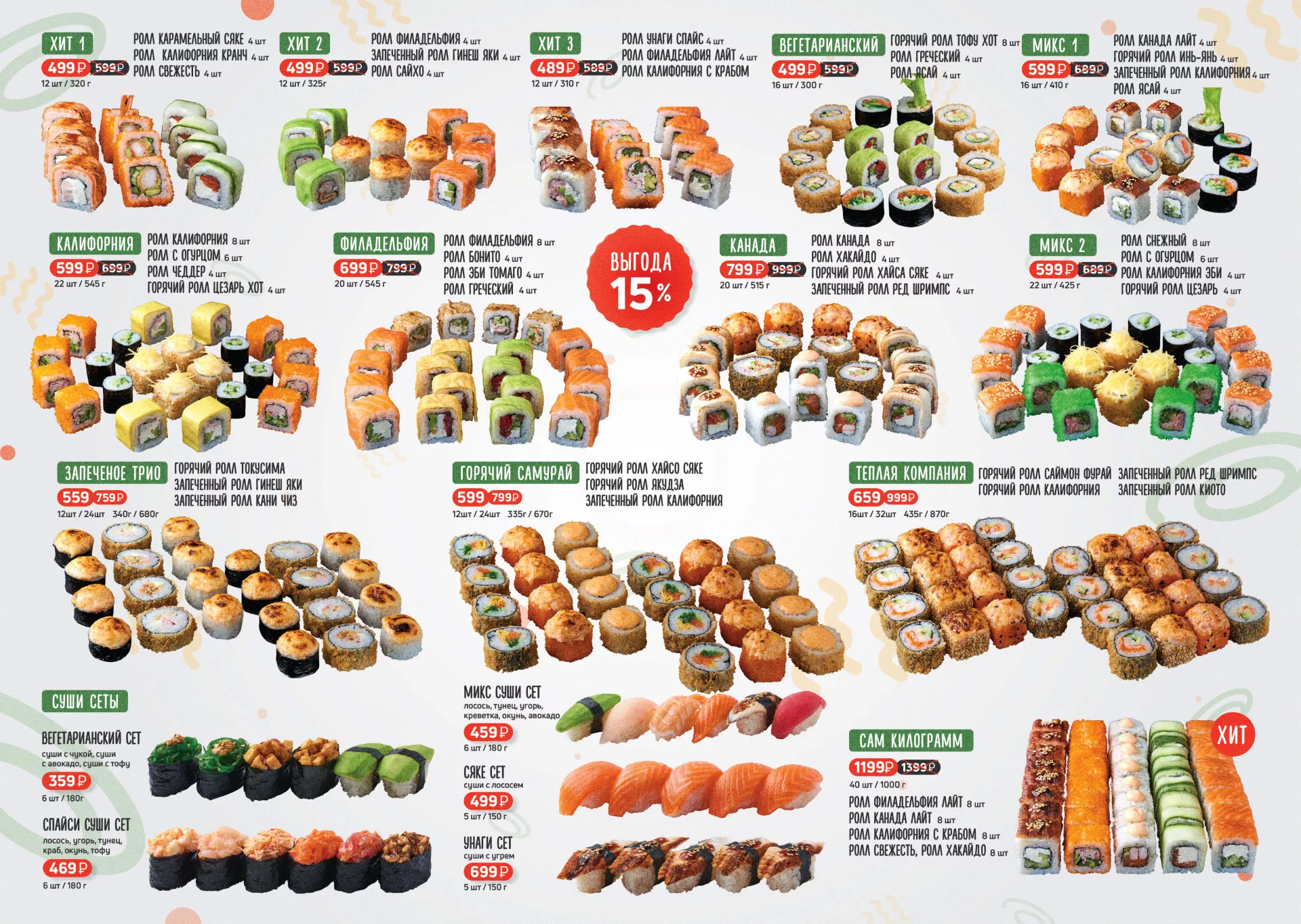 Оформление меню суши-бара «Roll Wok Club» в Озёрске