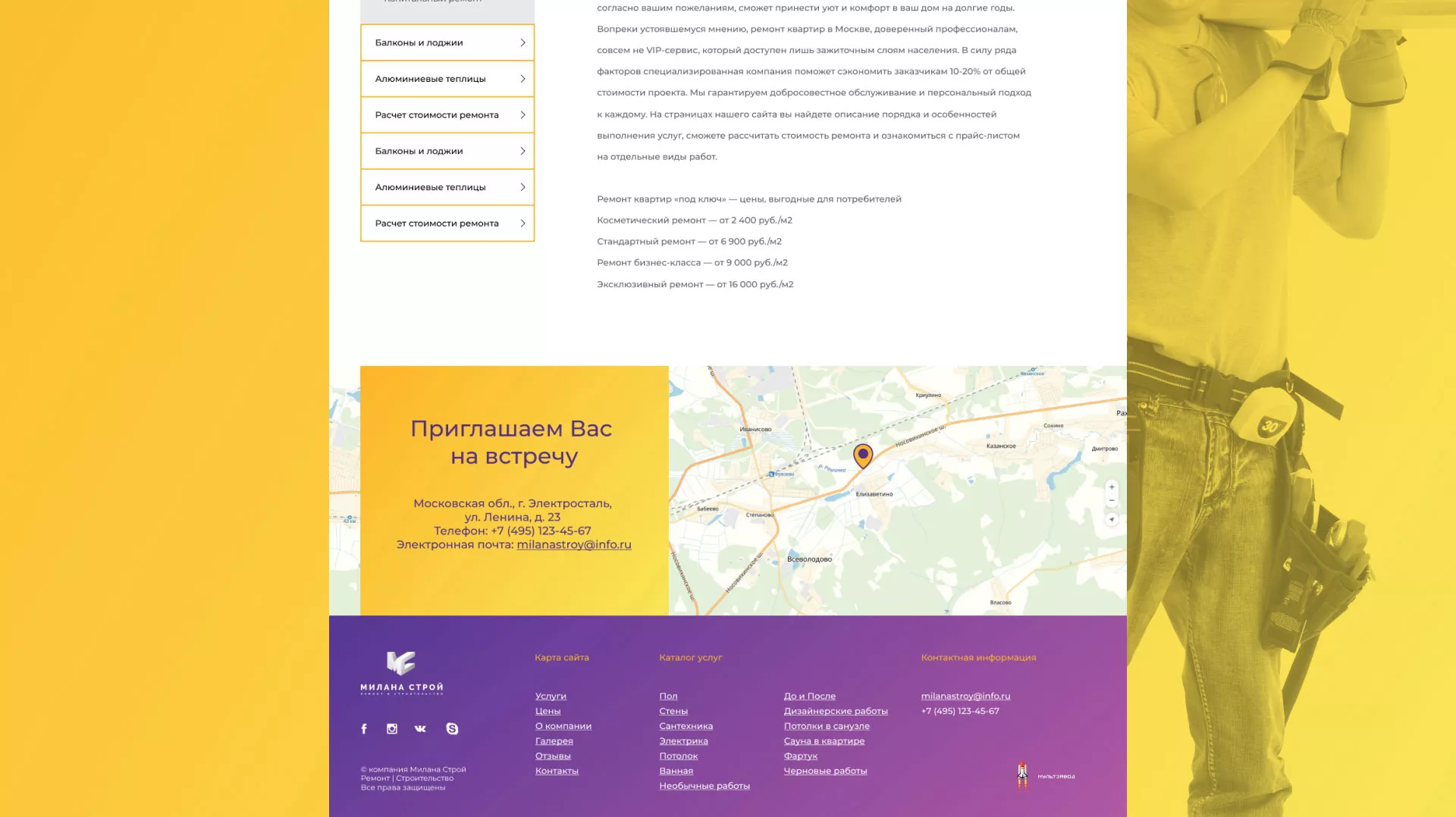 Разработка сайта в Озёрске для строительно-отделочной компании «Милана-Строй», обслуживание сайта, продвижение сайта в Озёрске.