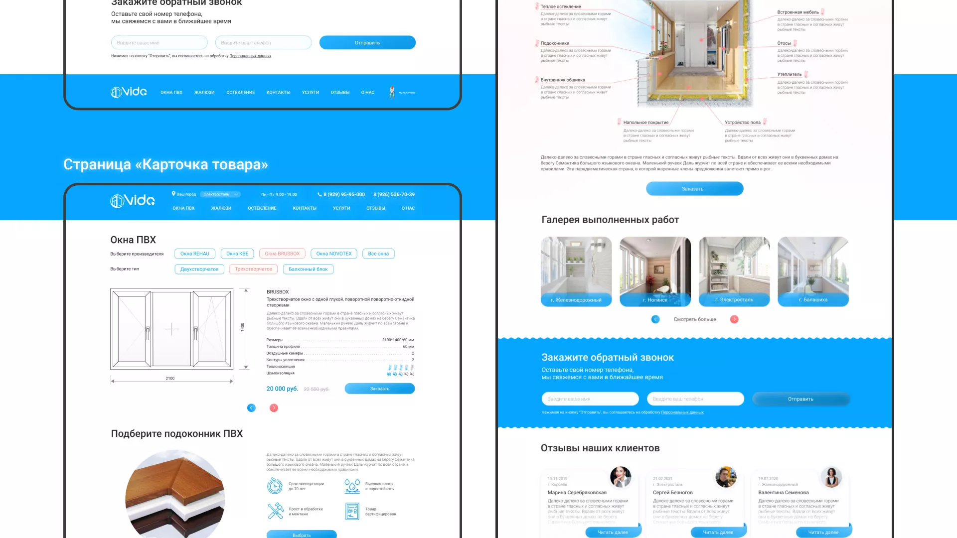 Задачей по проекту было — разработать светлый, дружелюбный дизайн сайта-каталога компании «Окна ВИДО» в Озёрске, интерфейс взаимодействия с пользователем и проработать внутренние страницы, наглядно отобразив информацию иллюстрациями.