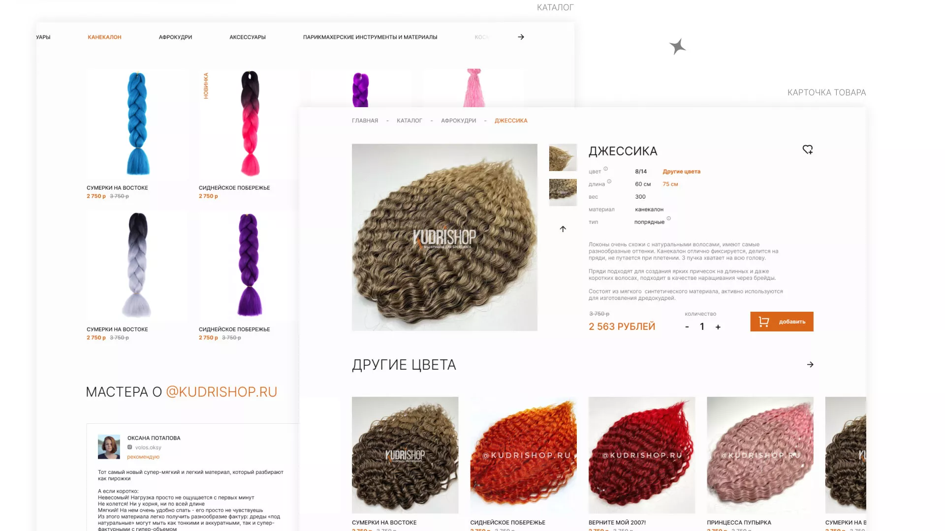 Создание интернет-магазина по продаже афрокудрей и других материалов для брендинга в Озёрске. Целевая аудитория — молодые и современные девушки, желающие разнообразить свой образ.