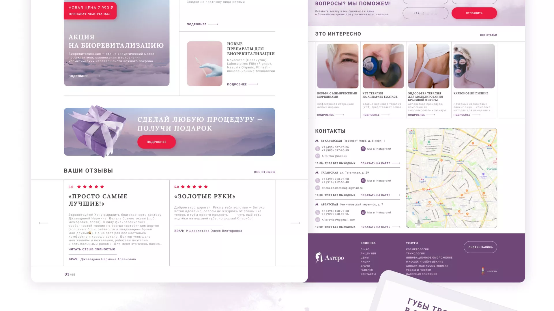 Сеть клиник эстетической косметологии «Алтеро» в Озёрске — это квалифицированные специалисты, новейшее оборудование, качественные препараты, эффективные и разнообразные методы лечения, индивидуальный подход с учетом физиологических особенностей и пожеланий пациента, доступные цены.